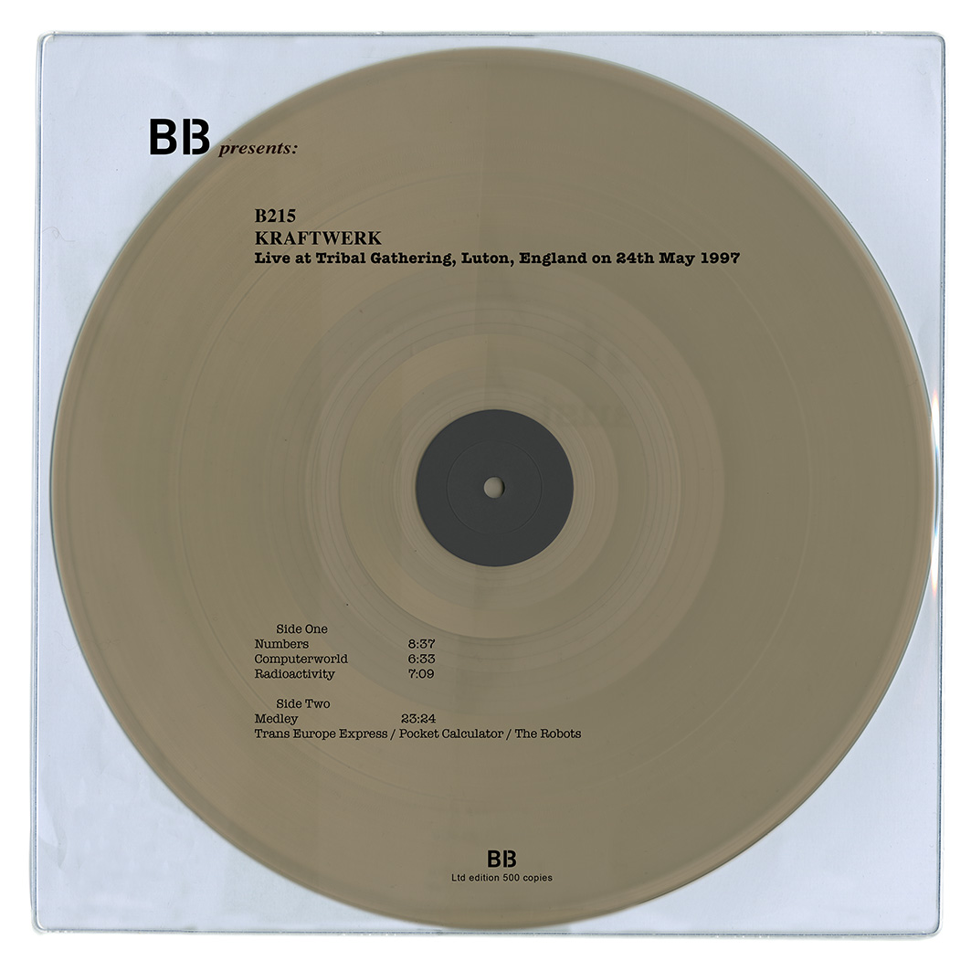 | IL RITORNO IN SCENA DEGLI UOMINI-MACCHINA DI DUSSELDORF, LA LORO MITICA APPARIZIONE AL TRIBAL GATHERING DI LUTON HOO, PROPRIO AL CENTRO DI UNO DEI FESTIVAL MANIFESTO DELLA RIVOLUZIONE RAVE. VINILE HAVANA LIMITATO A 500 COPIE IN PVC TRASPARENTE. LA SCALETTA, PRIMO LATO: NUMBERS, COMPUTER WORLD E RADIOACTIVITY. SECONDO LATO: MEDLEY COMPRENDENTE TRANS EUROPE EXPRESS, POCKET CALCULATOR E THE ROBOTS. |